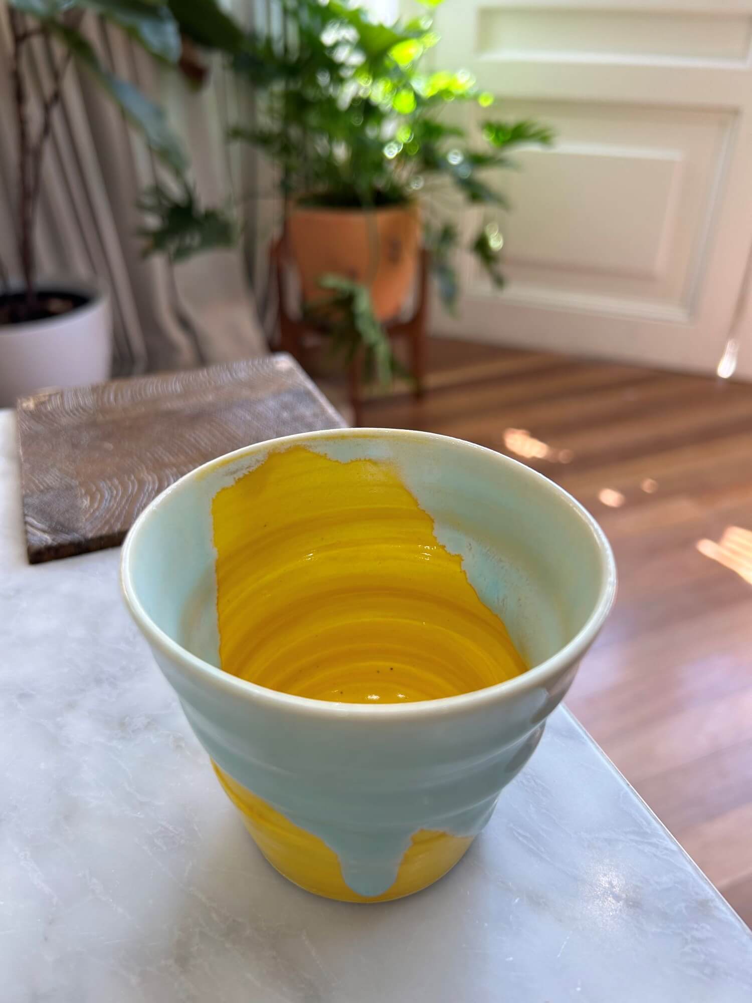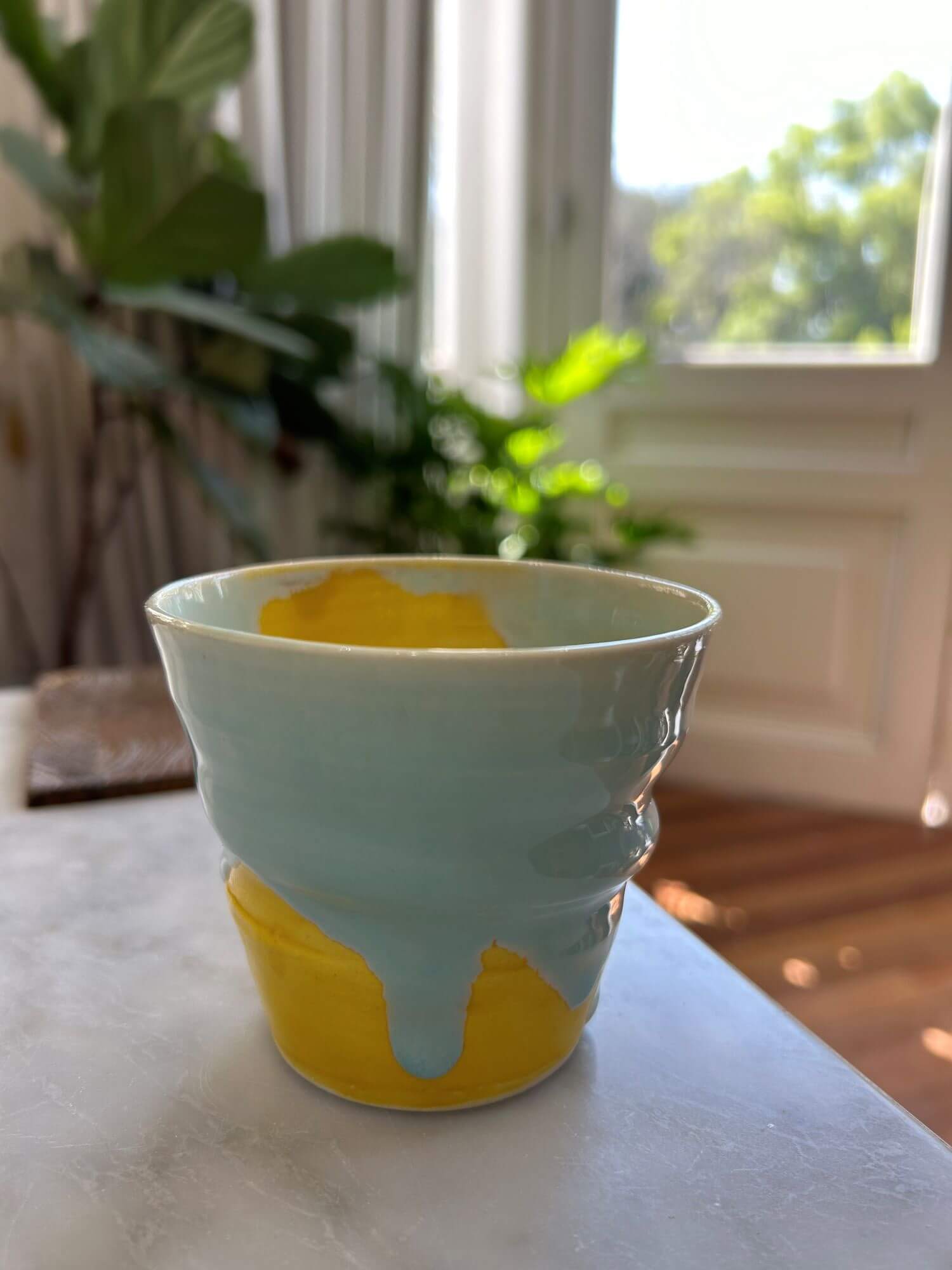 Tall Cup Blue yellow Glazing